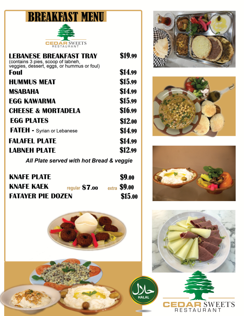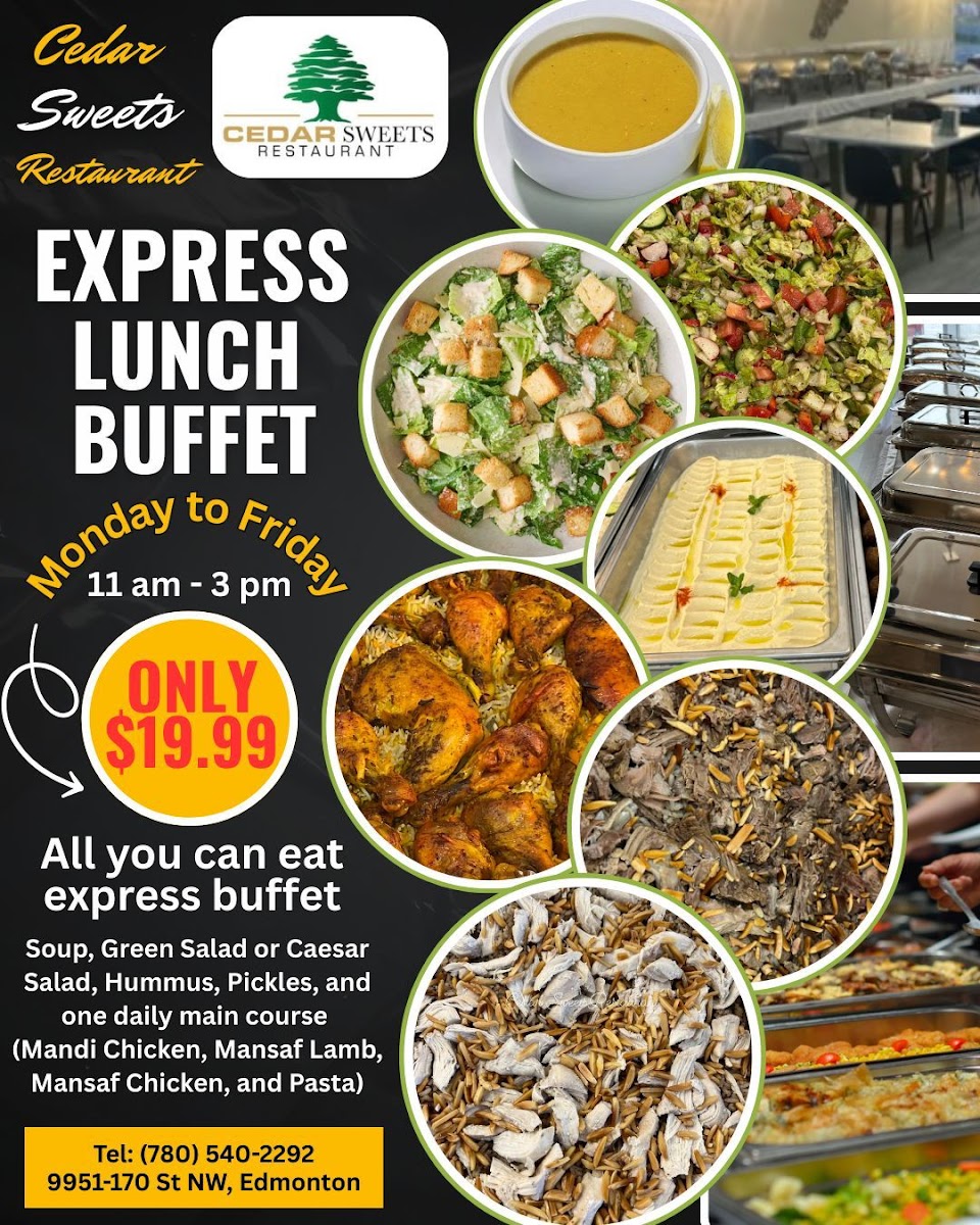 “ Cedar Sweets Restaurant and Catering - 9951 170 St NW, Edmonton, AB T5P 4S2 We recently visited Cedar Sweets for their weekend breakfast buffet, and it was a fantastic experience. The food is a diverse mix of Middle Eastern cuisine, offering something for everyone. As South Asian with a different palate, we thoroughly enjoyed everything. The dishes were fresh, hot, and flavorful, with plenty of variety. The restaurant itself is clean and well-maintained, creating a pleasant dining atmosphere. At 20 per person, the breakfast buffet offers great value for money. Overall, it’s the perfect spot for a weekend breakfast, and we’ll definitely be back! ”